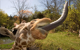 For your information giraffes tongue length is about 53 cm, and the giraffe is able to run about 55 km / h time in attacking the enemy. Giraffes sleep about 1.9 hours per day. Giraffes communicate with the issuance of sound variations.